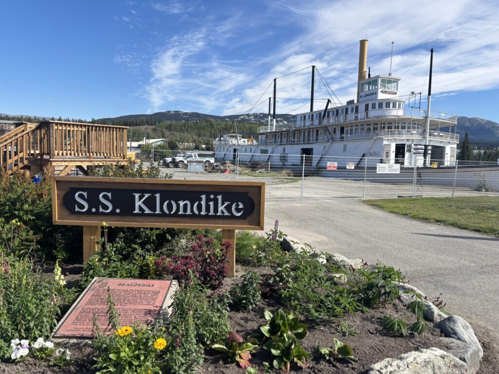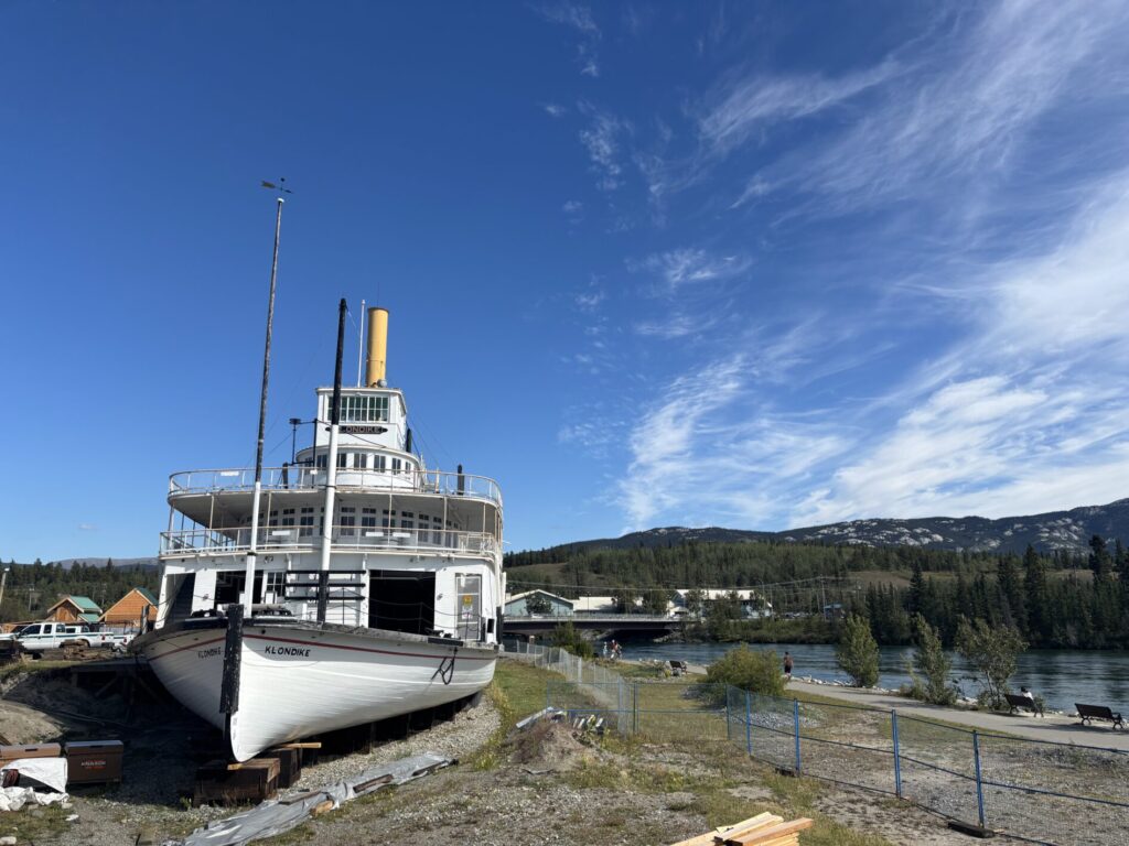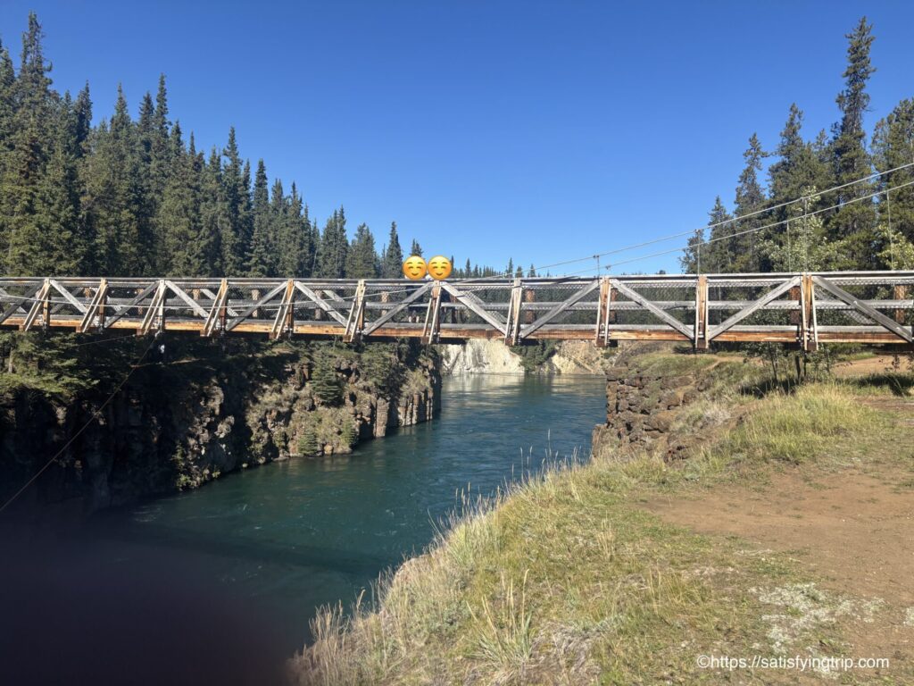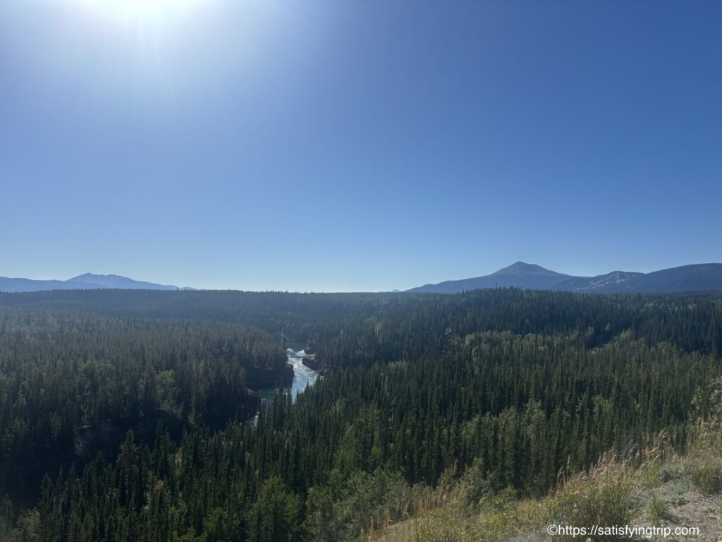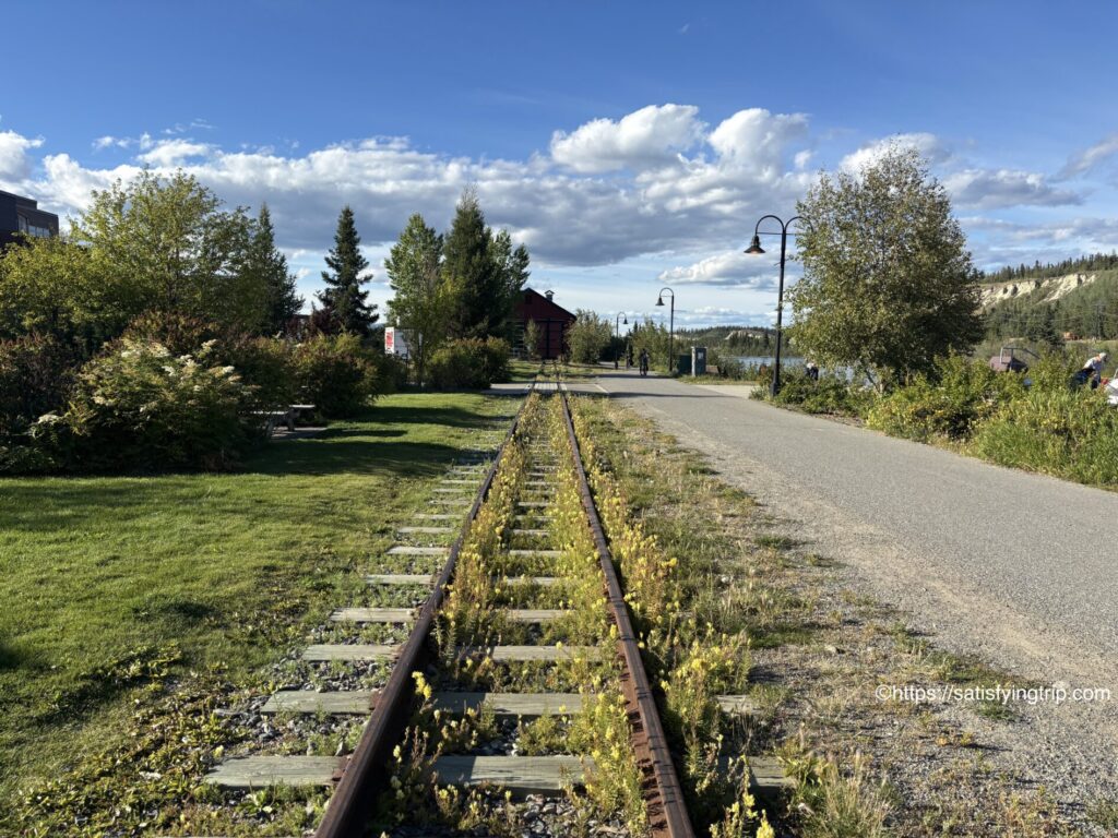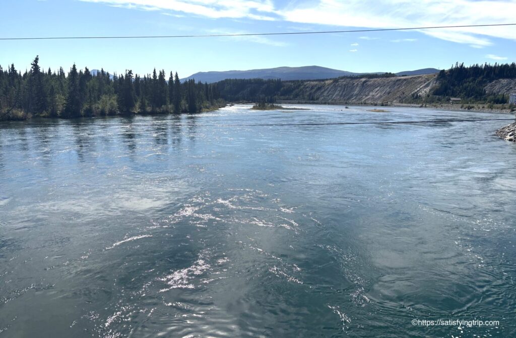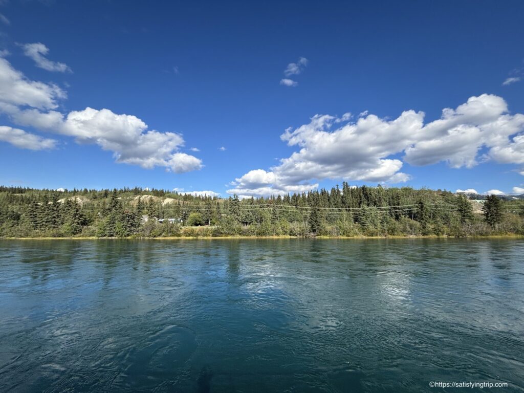めちゃくちゃ綺麗なユーコン川が街のすぐそばを流れています。川沿いに遊歩道がありずっと歩いていけます。時々川辺に降りられるのですが、流れも早いし水温も低いので泳ぐことはできなさそう。