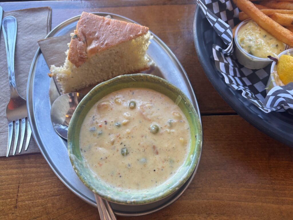 フィッシュ&チップスがとにかく美味しい!これ目当てに再訪したいです。パスタもシーフードチャウダーも美味しかった!でもサーモンは私にはちょっと生臭いかな。他の店舗よりもお安めだったので量が少ないのかな?と思いきや、食べきれないほどボリュームたっぷりでした。提供も早くて良き。