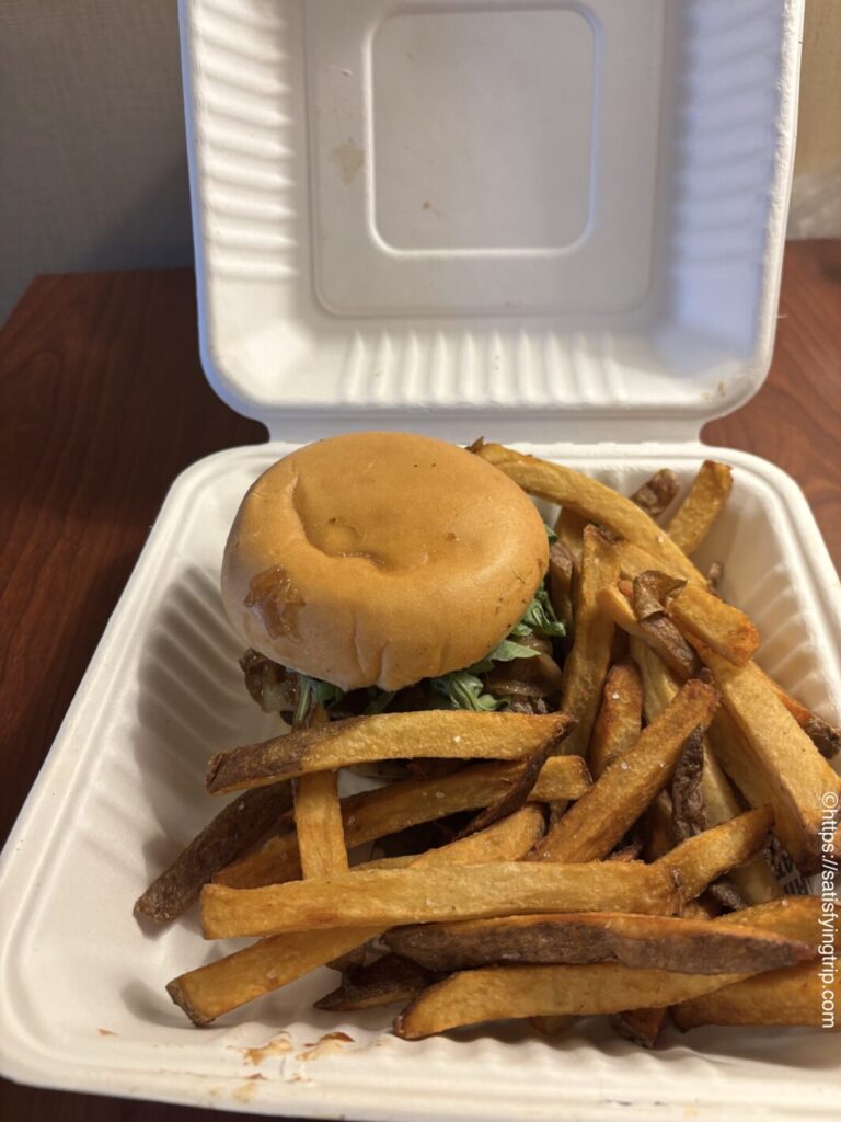 夕飯は、Dirty Northernでバイソンバーガーをテイクアウト。
