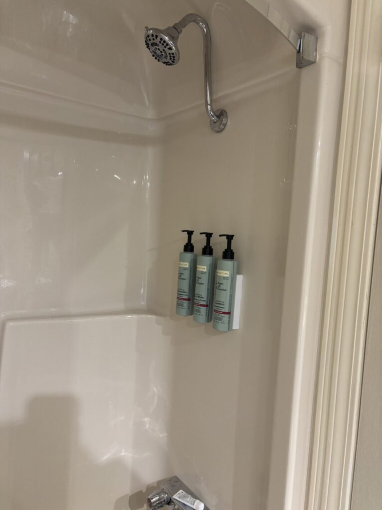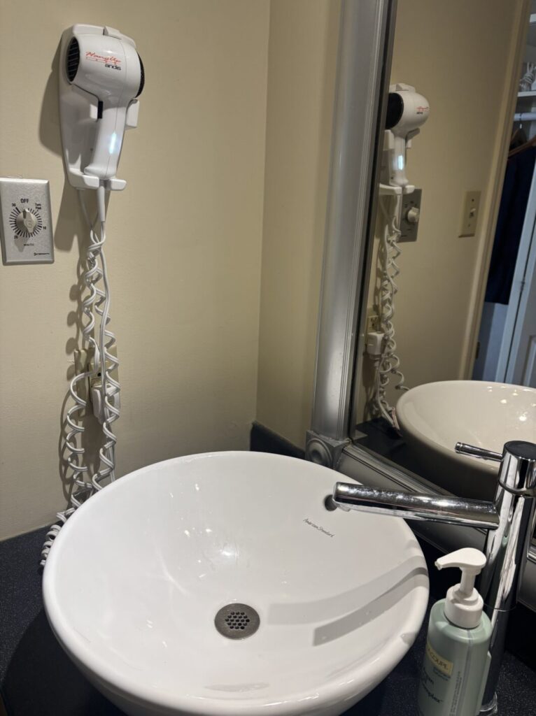 水回りの使い勝手は、カナダスタンダードですかね。歯ブラシなどはなし。固定シャワーでドライヤーも弱め。